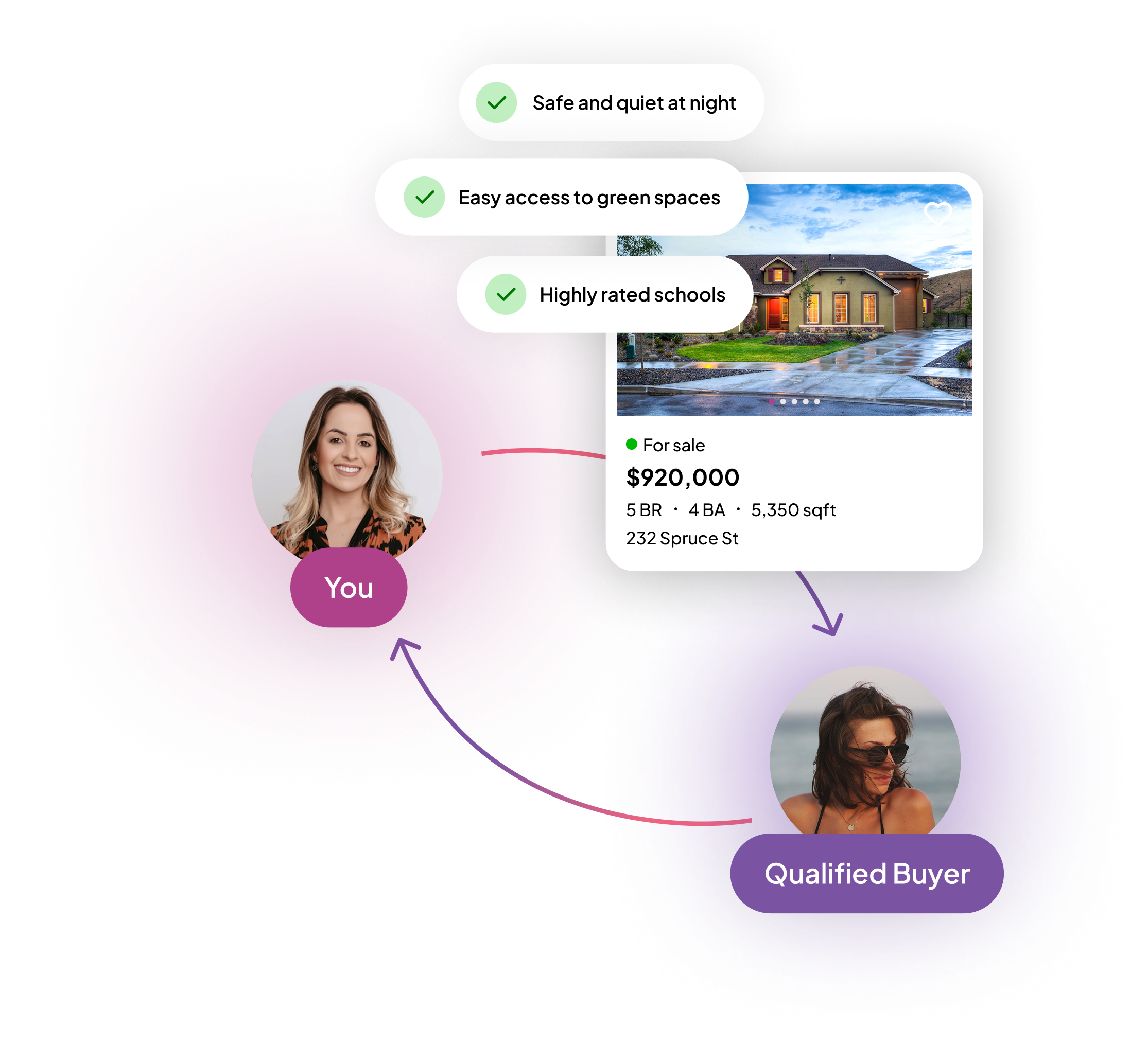 We take the content you create — your insights, knowledge, and neighborhood expertise — and put it in front of buyers at the right time. This helps buyers see you as the trusted local guide, not just another agent.